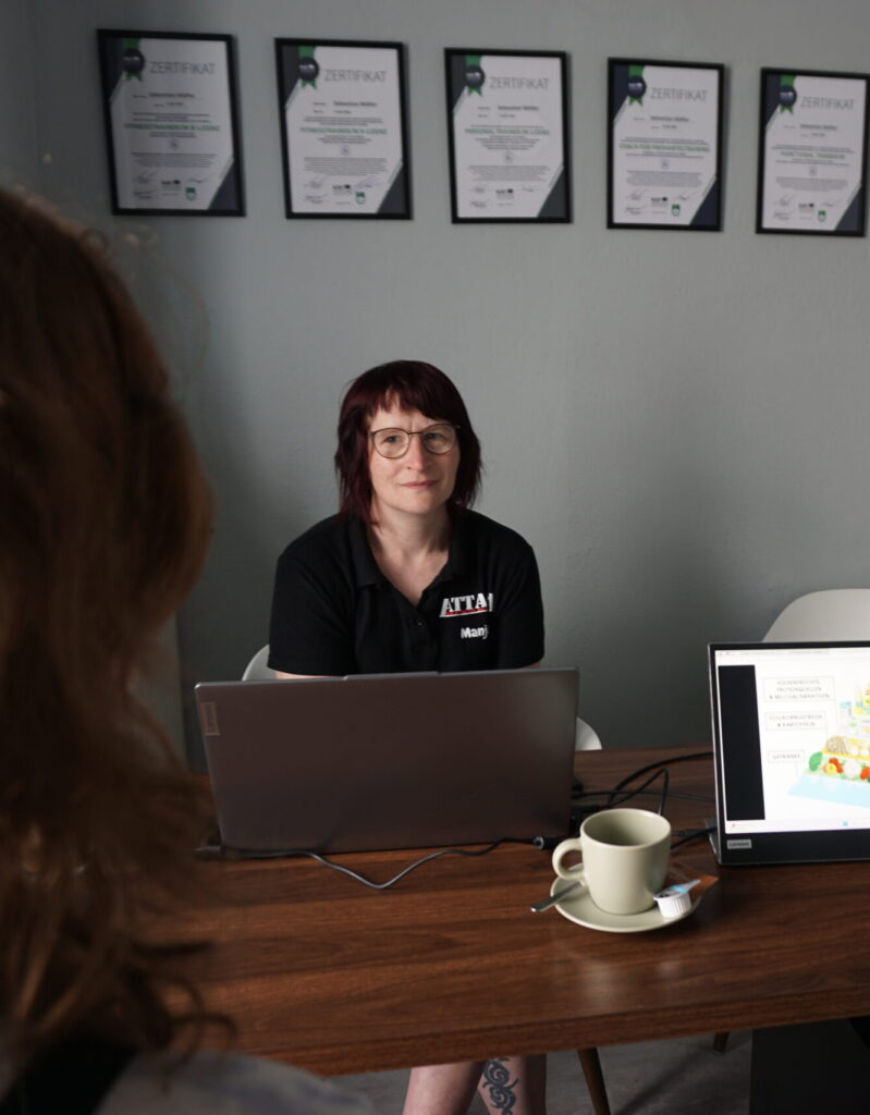 Wir bieten dir persönliche Beratungsgespräche, die individuell auf deine Bedürfnisse abgestimmt sind. Dabei entscheidest du ganz flexibel, wie deine Ernährungsberatung abläuft: Ob regelmäßig im direkten 1-zu-1-Gespräch – persönlich bei uns im Studio, bequem per Zoom oder alternativ flexibel per App-Coaching. Auch Hybridmodelle sind möglich, sodass sich alles optimal an deinen Alltag anpasst.